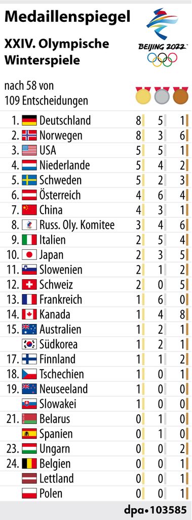 Menschenrechtsorganisation fordert vom IOC 2 deutschland 8 5 2 15. Im olympischen medaillenspiegel sehen sie auf einen blick wer die gewinner und verlierer der olympischen spiele 2022 sind. Posted by 6 minutes ago.
